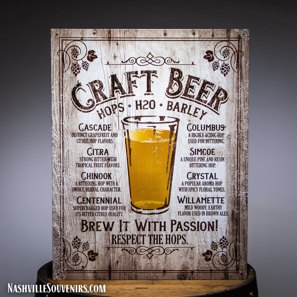 Description For the beer brewing fan. Craft Beer Hops H2O Barley Tin Sign. Great prices - Fast shipping. Buy yours today at NashvilleSouvenirs.com