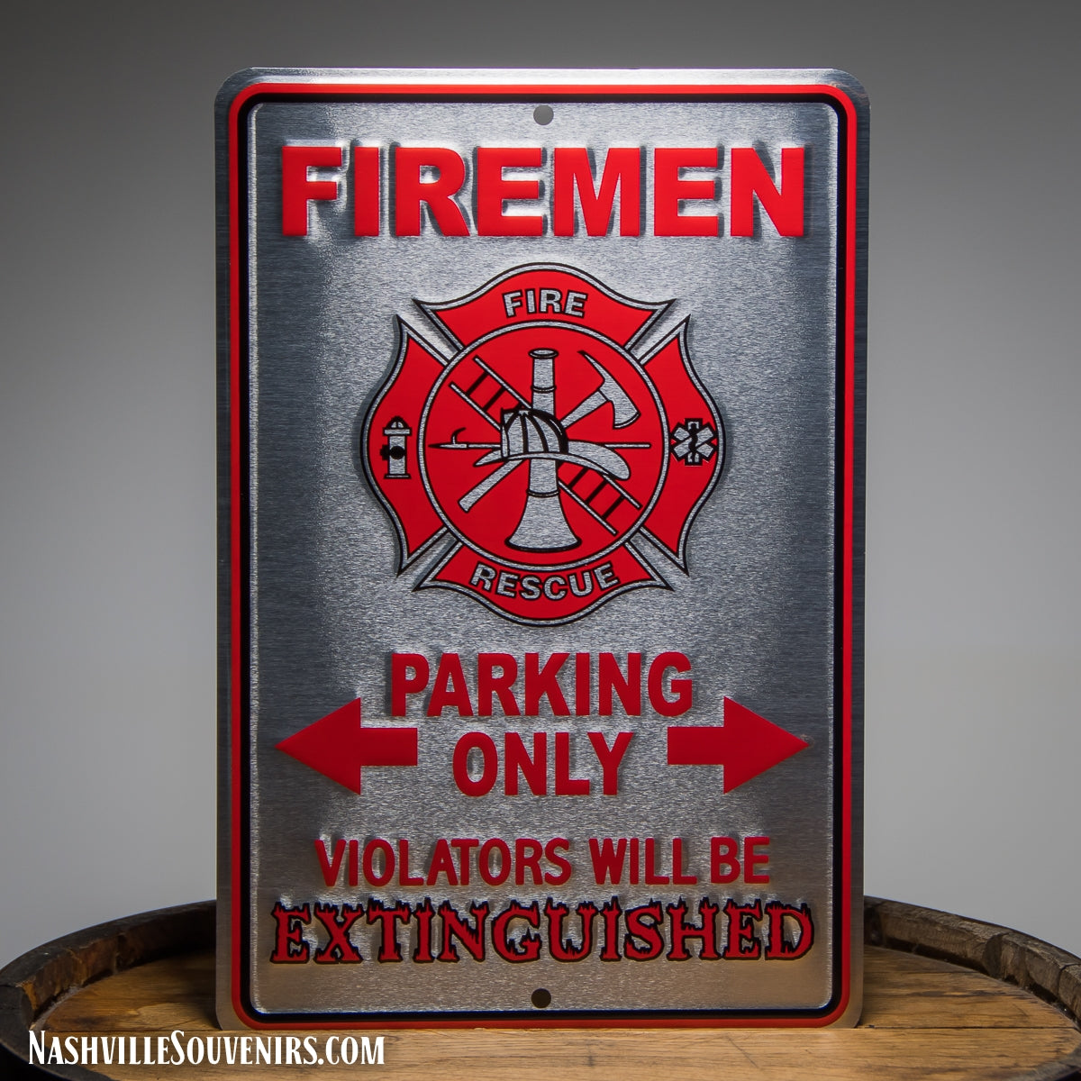 Description Novelty tin sign that reads, FIREMAN Parking Only.