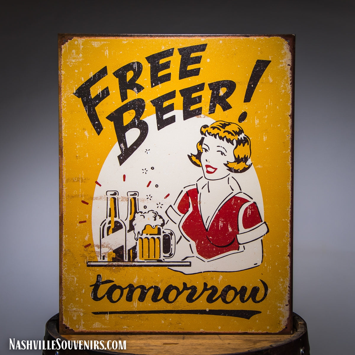 Description FREE BEER Tomorrow Tin Sign, I can't wait for tomorrow, how about you? G Great prices - Fast shipping. Buy yours today at NashvilleSouvenirs.com