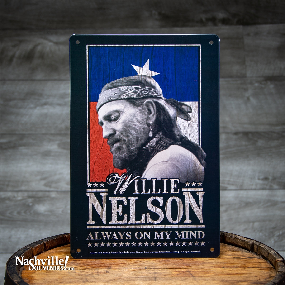 Description A great new Willie Nelson "Always on my Mind" Tin Sign featuring a great shot of Willie Nelson wearing his trademark bandana along with a big, bold 'Willie Nelson" above the song lyrics from "Always on my Mind.